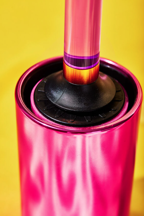The most fun way to pick up loose strands, specks, and fuzzies. The Lint Roller has a colorful translucent acrylic handle adorned with the signature Staff smiley and a golden ring for extra shine. The roller component is a sticky rubber that picks up unwanted items with ease. Simply rinse the roller under warm water after use and it can be re-used effectively dozens of times (under promise, over deliver). The whole unit sits in a colorful canister so you can proudly leave it out for display.