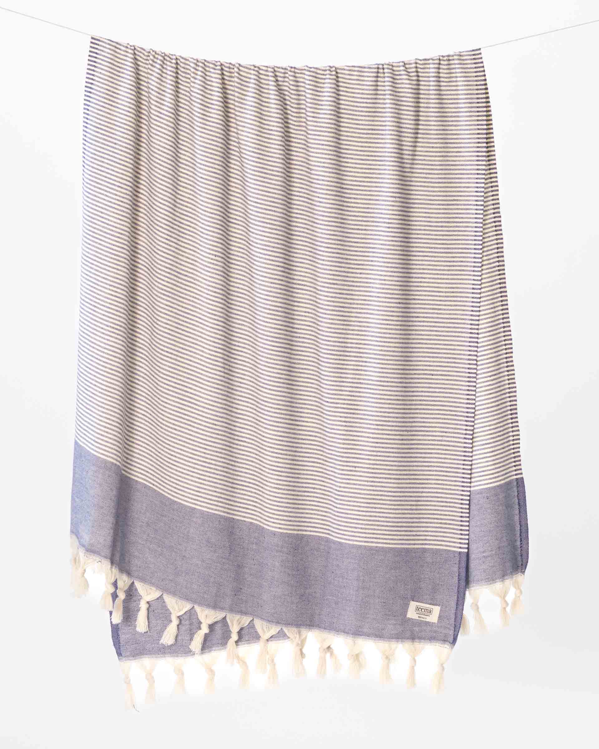 The Noble Towel is one of our cleanest designs, giving it a very luxurious look and feel. Made on our automatic jacquard looms, this towel has a tighter weave making it light and soft, yet strong and durable. Its versatile design of course looks lovely around the house as a towel or throw, but also looks great on the go as a shawl, scarf or wrap.